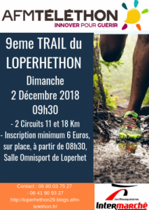 Comme chaque année, le Loperhethon était organisé ce dimanche 2 décembre afin de récolter des fonds pour le Téléthon. Deux distances de trail proposées cette année : 11 et 18km. Et c’est sur la plus courte (11km) que Jordan et Camille ont pris le départ, sur un parcours boueux et très ludique! Une photo des …