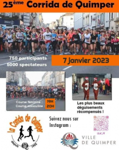 Changement de programme pour la Corrida de Quimper cette année! Traditionnellement organisée le dernier dimanche de l’année cela coïncidait cette année avec Noël cette année, une semaine avant c’était la finale de la coupe du monde de Football. La 25ème édition de la corrida de Quimper s’est donc déroulée en nocturne le samedi 7 janvier. …