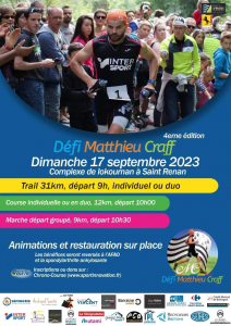 Le quatrième Défi Matthieu-Craff s’est déroulé ce dimanche 17 septembre 2023 à Saint-Renan en mémoire de Matthieu Craff, grand espoir du Trail décédé en 2017 dans le massif du Mont-Blanc. L’épreuve a réuni 1 150 participants : 650 coureurs et 500 marcheurs sur le site de Lokournan, en présence d’un nombreux public. Cette quatrième édition proposait une marche de …