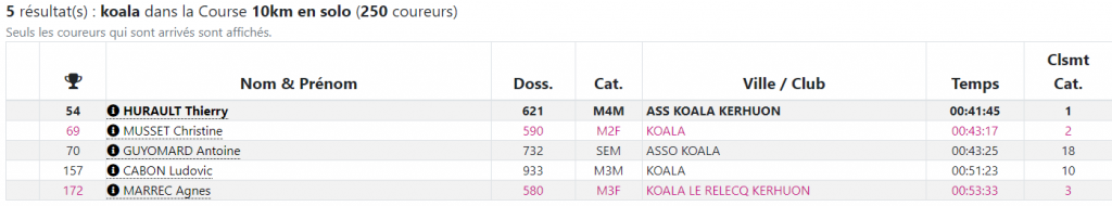 Plusieurs Koalas étaient présents sur le 10 Kms :