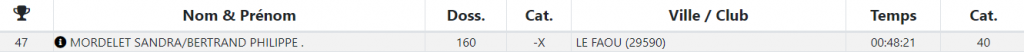 En 48 minutes et 21 secondes ils terminent à la 47ème place de l’épreuve, et 40ème en duo mixte. Bravo à vous deux!
