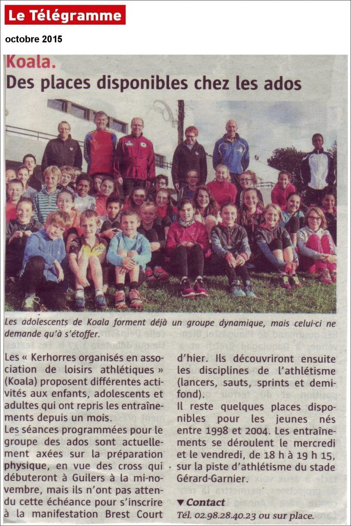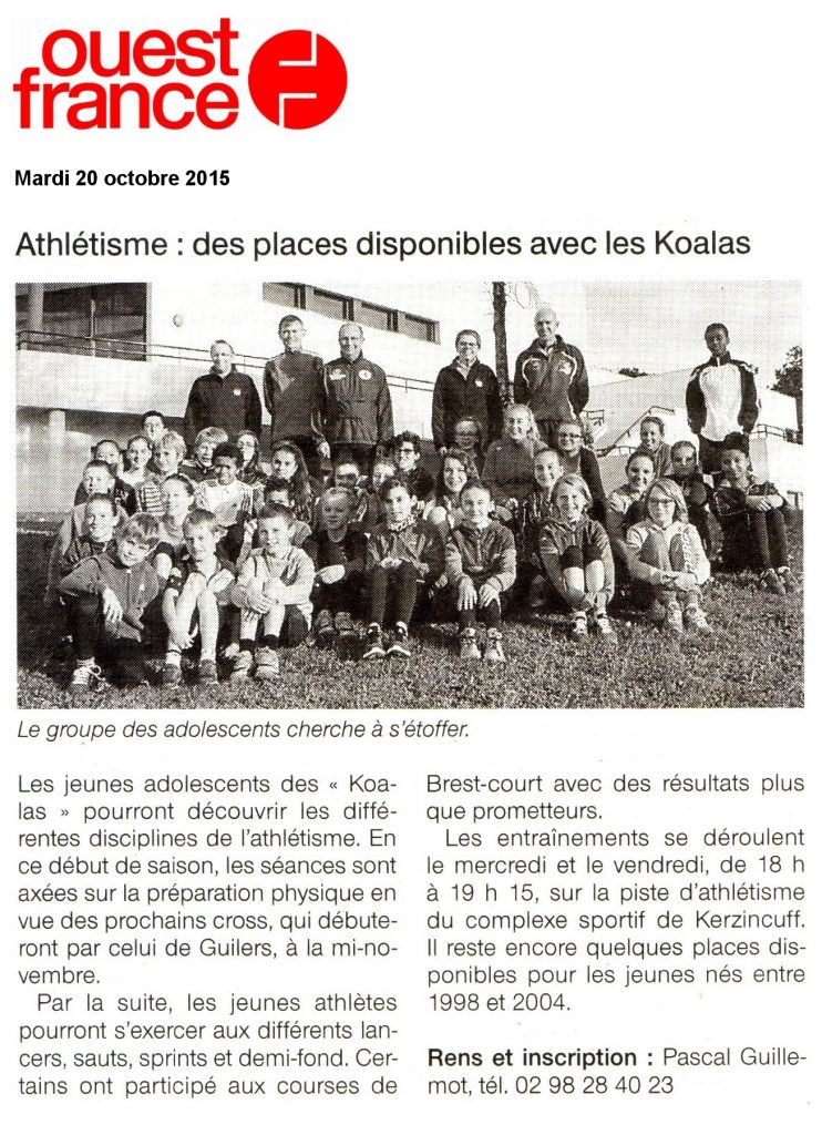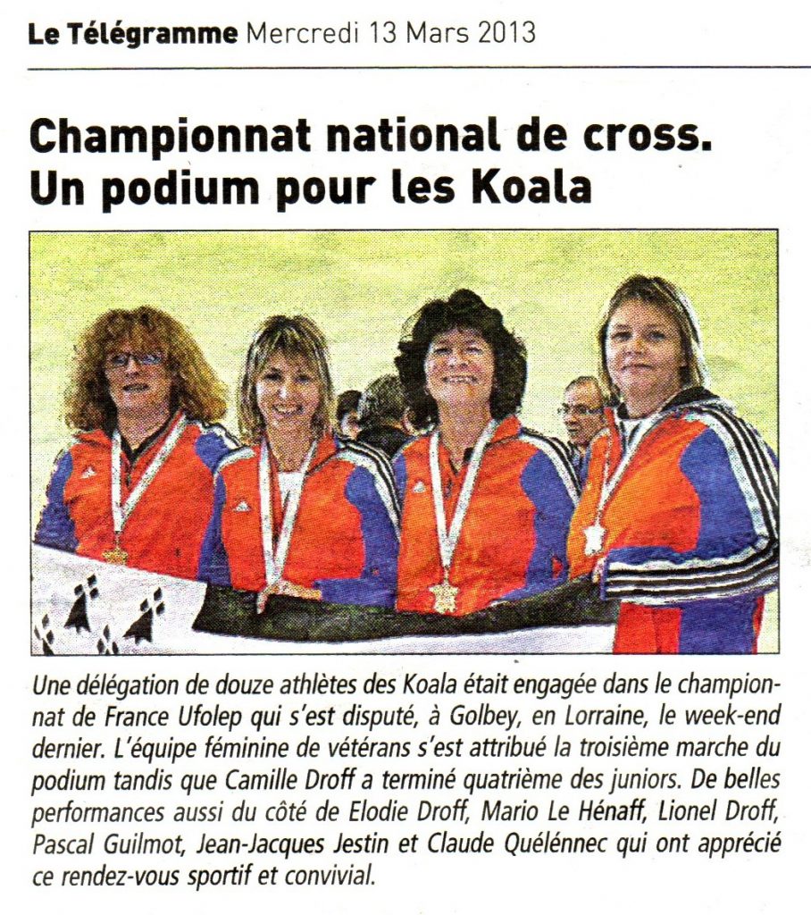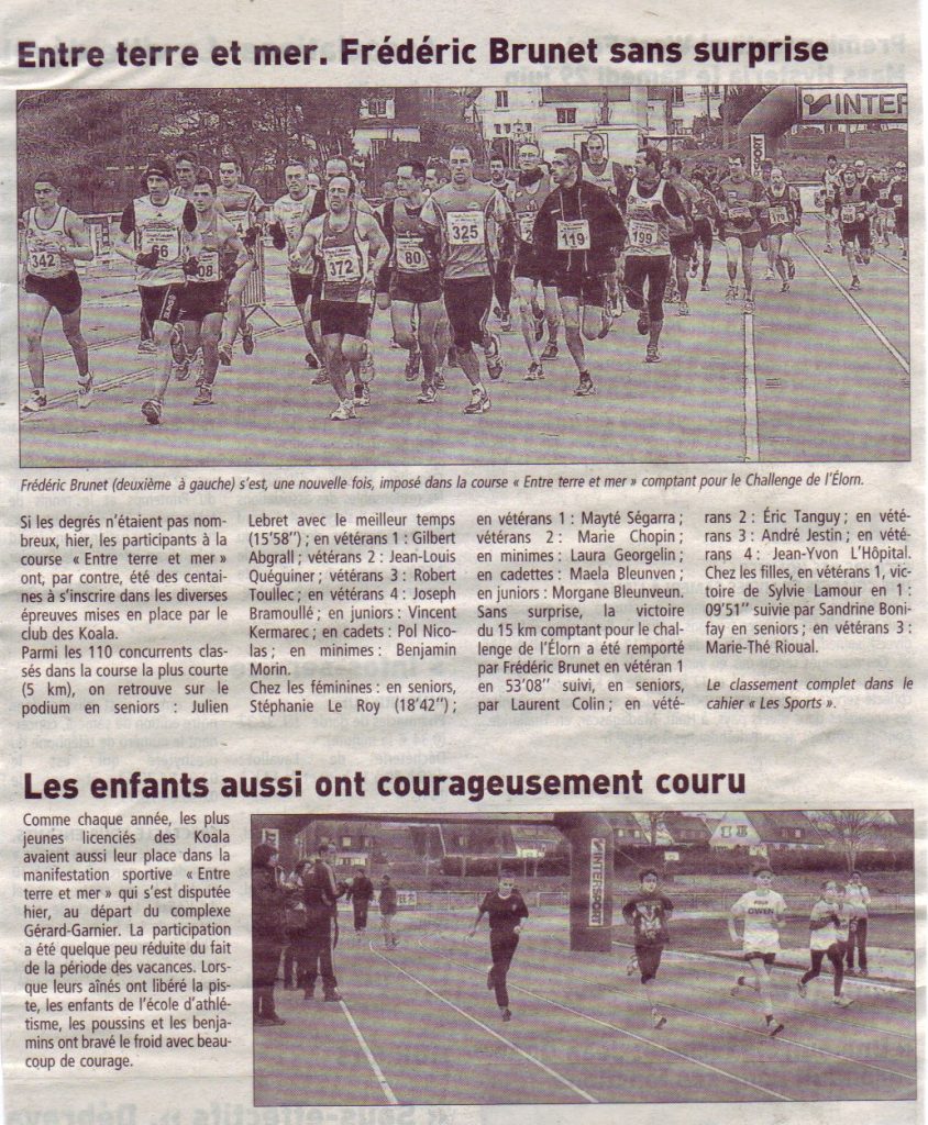 - 4 Décembre 2012 : Deux jeunes Koalas se distinguent au cross de Saint-Renan – Article du Télégramme