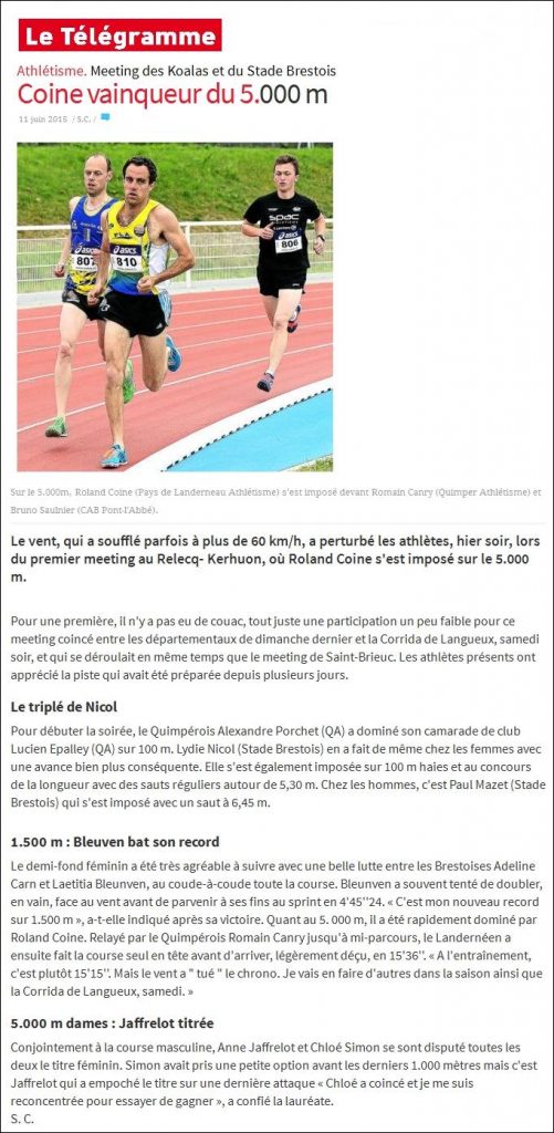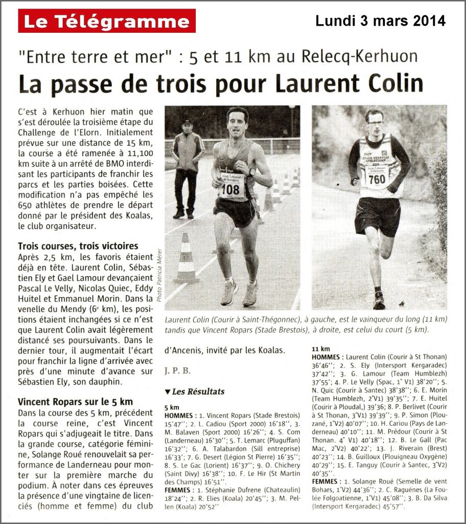 - Article du Télégramme pour annoncer la course :