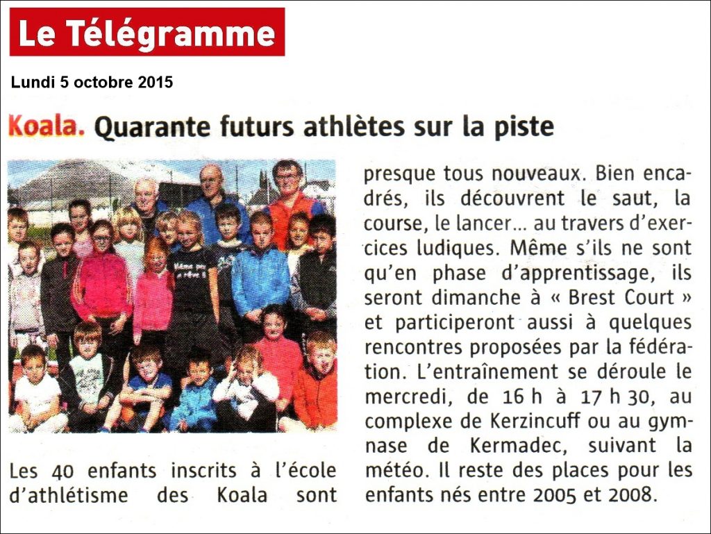 - 28 Septembre 2012 : Article du Télégramme sur la reprise de l’école d’Athlétisme